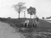 Auta parkující na hřišti v místě dnešní férveje č. 4 před greenem